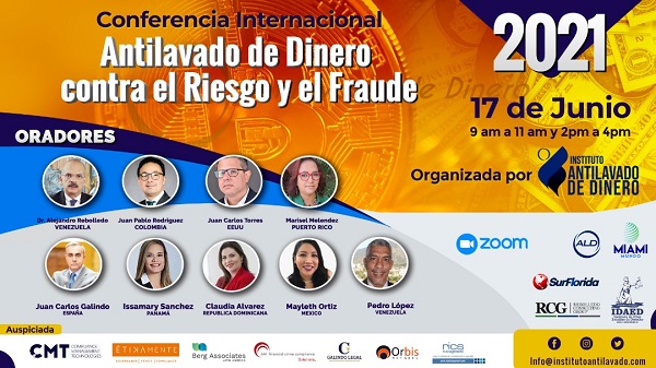 La Conferencia Internacional Antilavado de Dinero, contra el Riesgo y el Fraude, será el 17 de junio de este año, vía Online a través de ZOOM y está organizada por el Instituto Antilavado de Dinero, para prevenir y controlar la problemática del lavado de dinero y demás delitos afines a la delincuencia organizada transnacional.